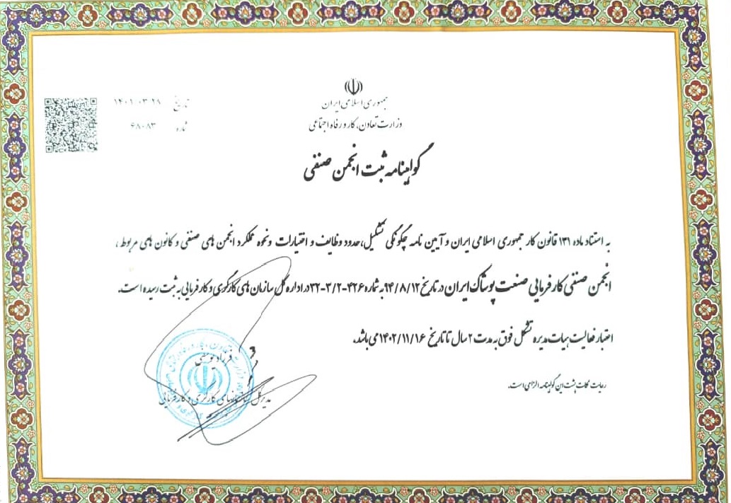 انجمن صنفی کارفرمایی صنعت پوشاک ایران در تاریخ 1394/08/12 به شماره
